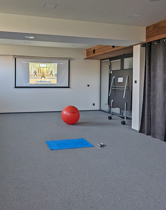 Ein brandneuer Multifunktionssaal bietet eine Vielzahl von Nutzungsmöglichkeiten. Egal, ob Sie alleine, zu zweit oder in einer Gruppe Sport treiben, einfach nur sitzen und einen interessanten Film anschauen oder die Qualität Ihrer ausgewählten Musik ungestört genießen möchten, oder ihn im Rahmen einer Konferenz oder Firmenbesprechung nutzen möchten. Der Multifunktionssaal ist mit einem Audio-System von Denon mit hochwertigem Laserprojektor und elektronisch gesteuertem Projektionsleinwand ausgestattet. Es gibt auch Sitzsäcke, Gymnastikbälle, Übungsmatten und einen Tischtennistisch inklusive Zubehör. Ein klarer Vorteil ist die Lüftungseinheit, die die Luftqualität und die stabile Raumtemperatur je nach Verwendungszweck des Saals überwacht.